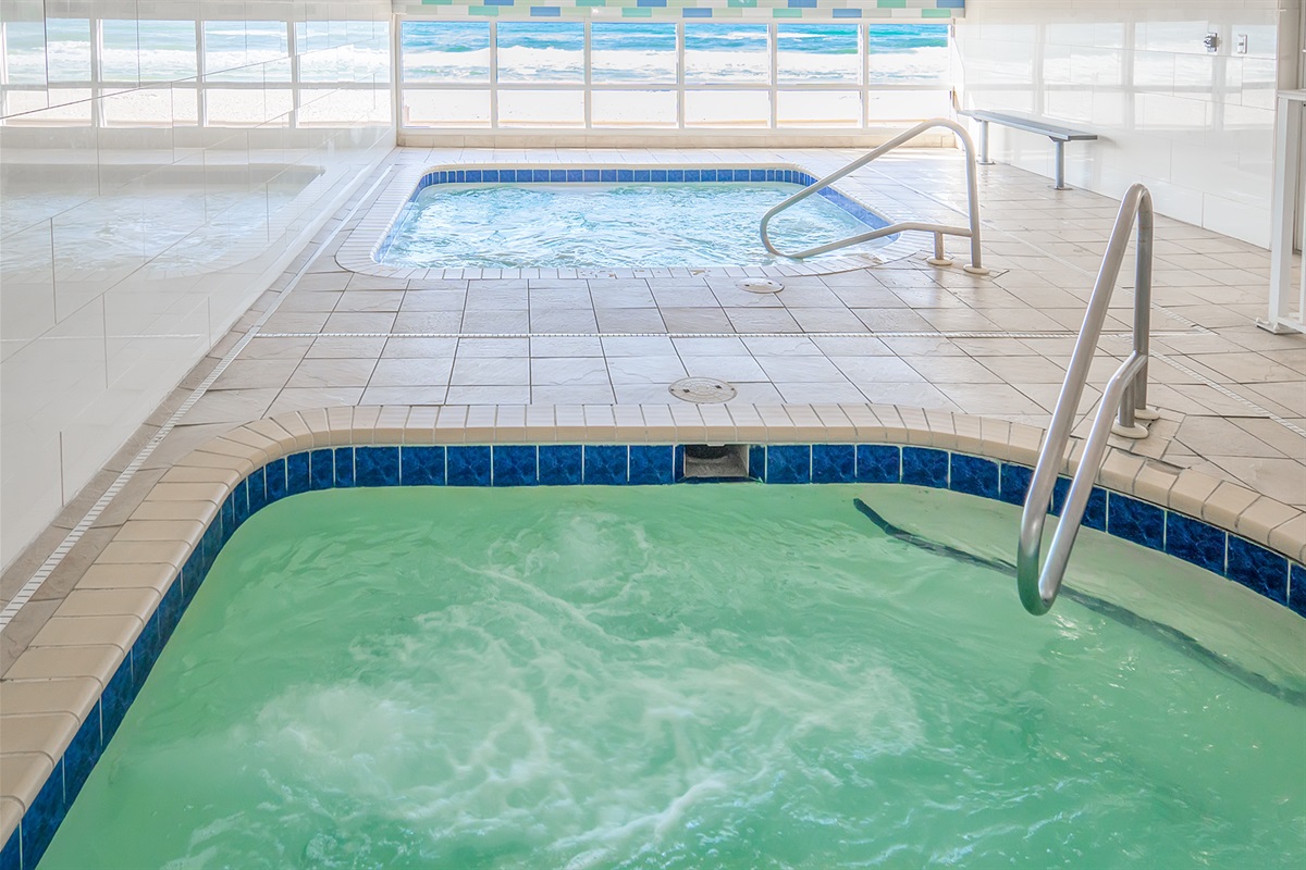 - 3 pools - 1 interior heated, 1 outside on east side of the building, 1 outside on west side of the building.