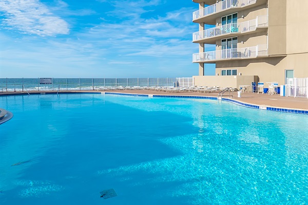 * Seasonal small store (flip flops) with frozen drinks, beer, sundries, ice, and starbuck's on Ground floor boardwalk near west end pool
