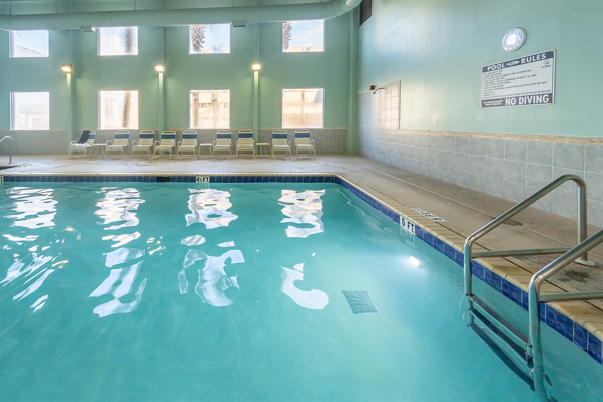 * 3 pools - 1 interior heated, 1 outside on east side of the building, 1 outside on west side of the building.